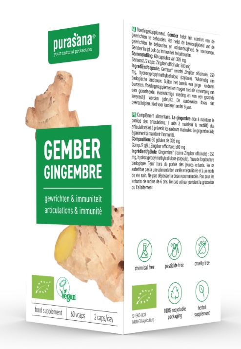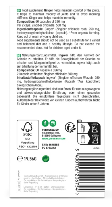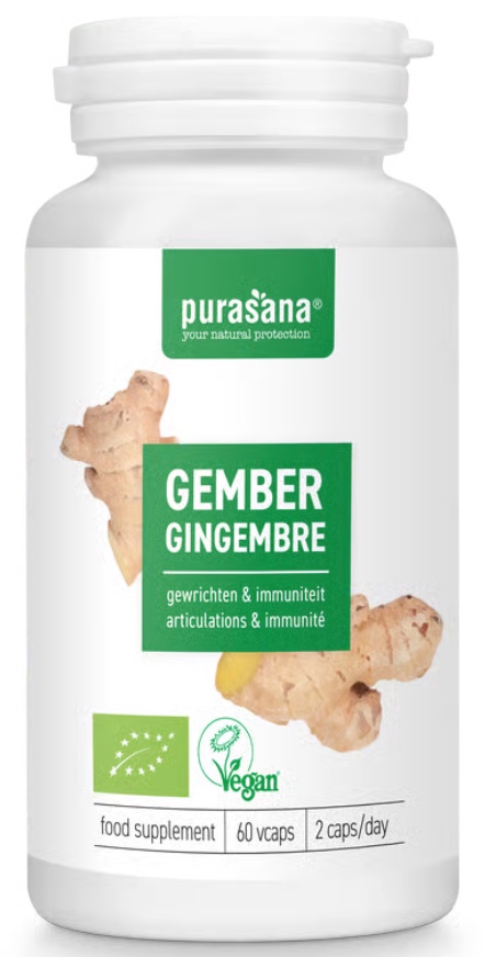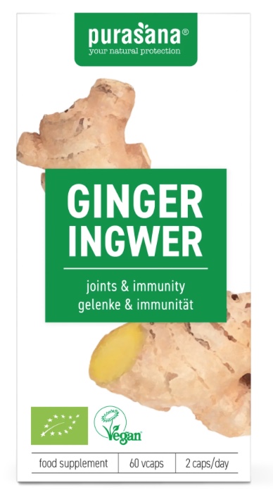 Purasana ORGANIC Ginger Имбирь пищевая добавка — это натуральный продукт, который поможет вам поддерживать здоровье и активность. В каждой упаковке содержится 60 капсул, наполненных экстрактом имбиря, известным своими полезными свойствами.