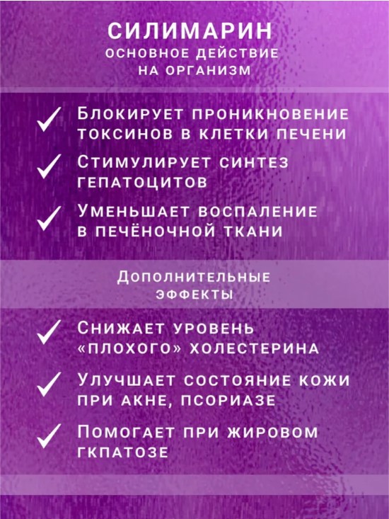 • Поддержка функции печени: Расторопша известна своими свойствами, способствующими детоксикации и восстановлению клеток печени.