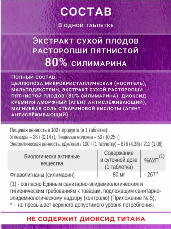 Таблетки легко проглатываются и подходят для ежедневного применения. Расторопша рекомендуется для людей, которые хотят поддерживать здоровье печени, особенно при употреблении алкоголя или жирной пищи.