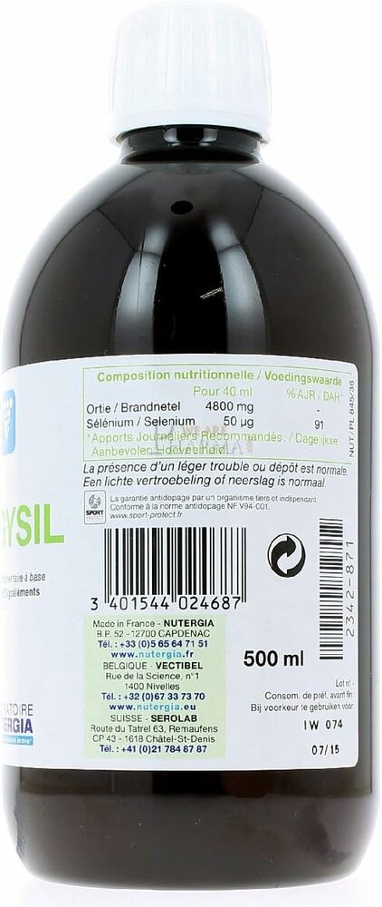Раствор Nutergia Ergysil 500мл — это высококачественный продукт, предназначенный для поддержания здоровья и оптимального функционирования организма. Он содержит уникальные компоненты, которые способствуют улучшению обмена веществ и поддержанию нормального уровня силикона в организме.