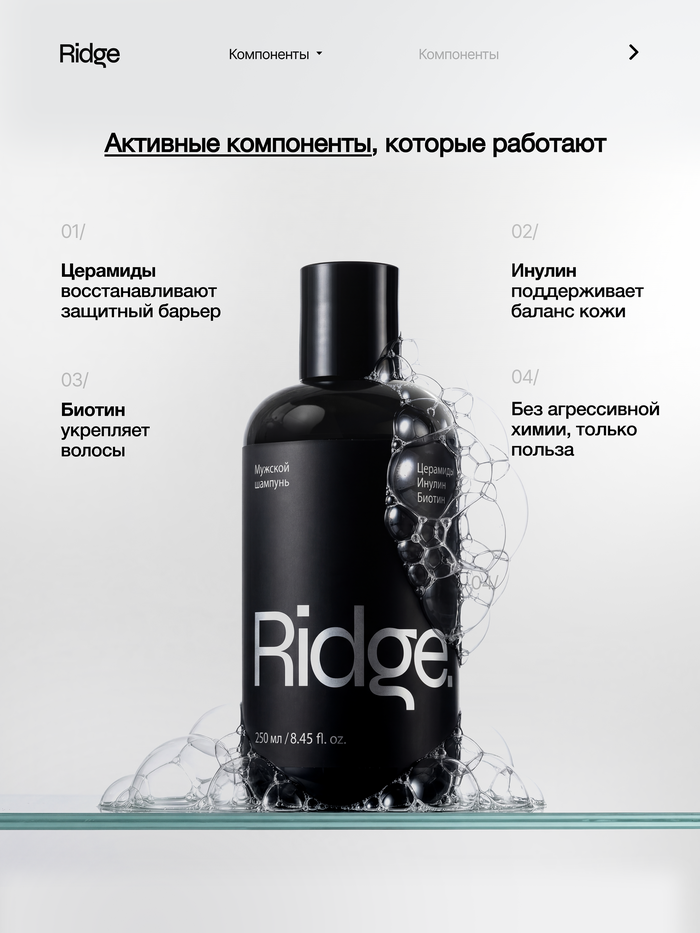 Мужской безсульфатный профессиональный шампунь, 250 мл от Ridge купить с доставкой по Москве и всей России в интернет-магазинах на Beautery можно с максимальной выгодой.