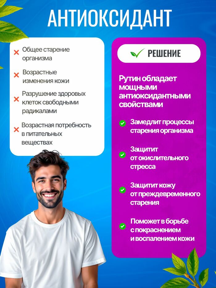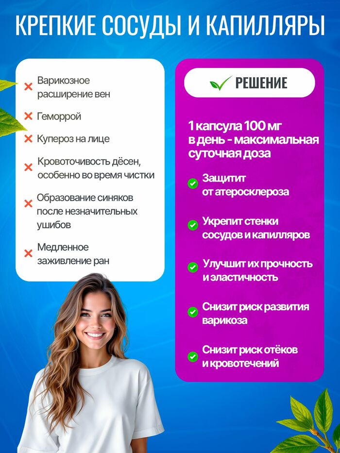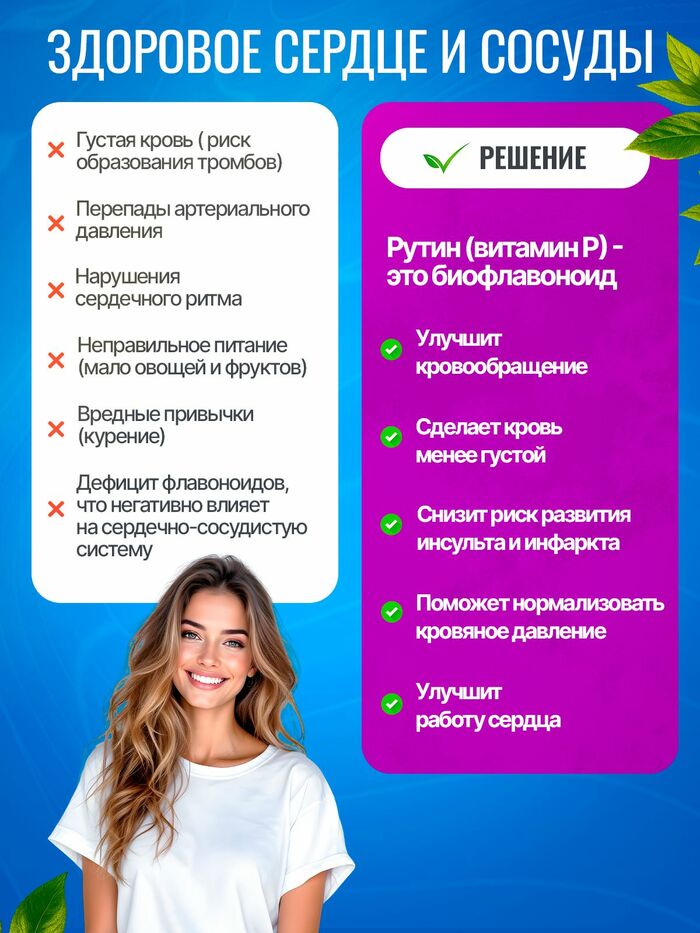 Капсулы легко проглатываются и подходят для ежедневного использования. Рутин рекомендуется принимать в периоды повышенной физической активности и стресса, а также для поддержания здоровья сосудов.