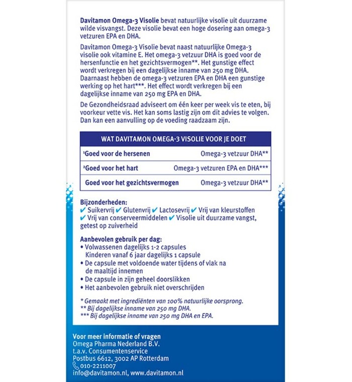 Рыбий жир Davitamon Omega 3 в капсулах — это высококачественная диетическая добавка, содержащая полезные омега-3 жирные кислоты. В каждой упаковке находится 60 капсул, которые помогут поддерживать здоровье сердца и сосудов.