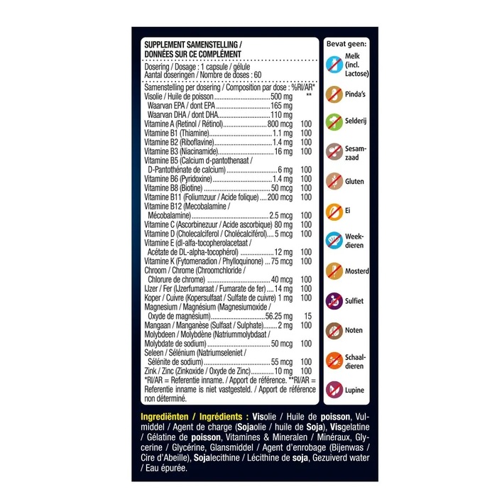 Рыбий жир и мультивитамины с минералами Lucovitaal — это отличный выбор для поддержания здоровья и жизненной энергии. В каждой упаковке содержится 30 капсул, которые обеспечивают ваш организм необходимыми жирными кислотами и витаминами.