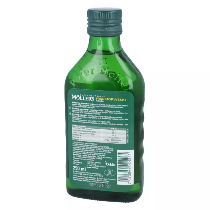 Рыбий жир Moller's Норвежский из печени трески натуральный 250 мл — это высококачественный продукт, который обеспечивает организм необходимыми омега-3 жирными кислотами и витаминами. Он идеально подходит для поддержания здоровья и активного образа жизни.