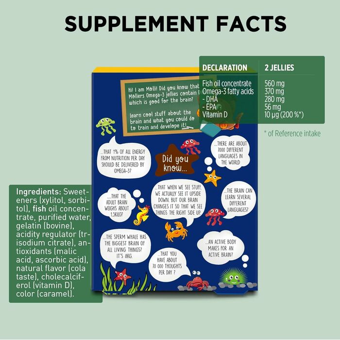 Рыбий жир Moller's Omega-3 с козьим молоком имеет приятный вкус и легко усваивается, что делает его идеальным для детей и взрослых. Продукт подходит для ежедневного использования и может быть добавлен в рацион в качестве дополнения к основному питанию.