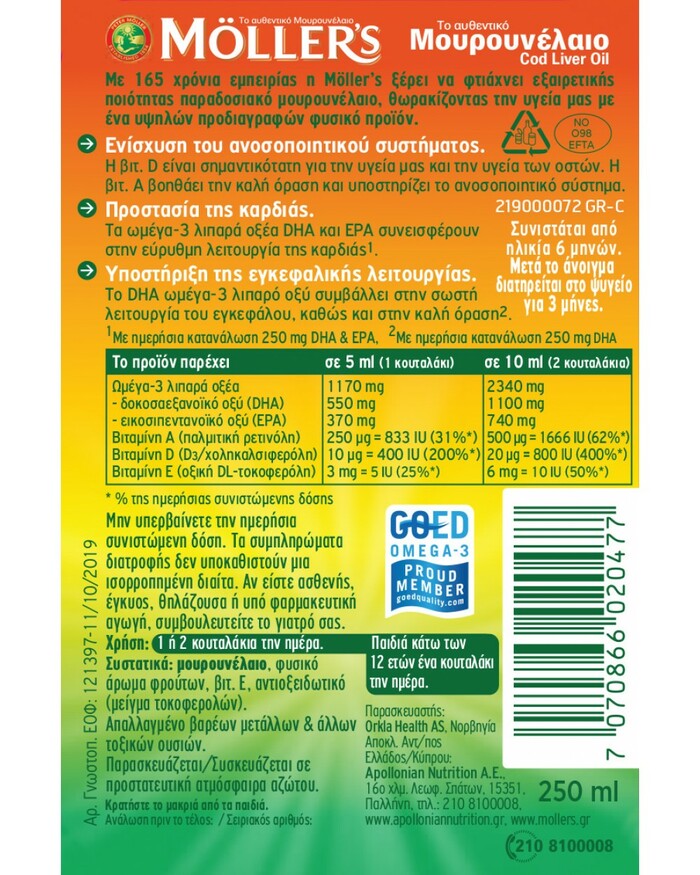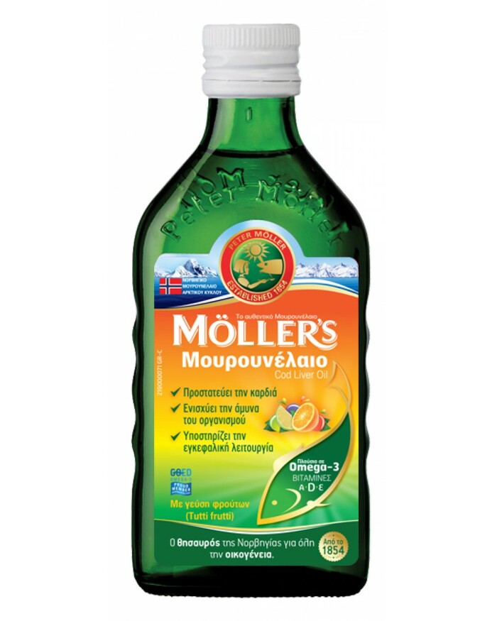Рыбий жир Moller's со вкусом Тутти-фрутти — это отличный способ обеспечить организм необходимыми омега-3 жирными кислотами. В каждой упаковке объемом 250 мл содержится высококачественный рыбий жир, который подходит для всей семьи.
