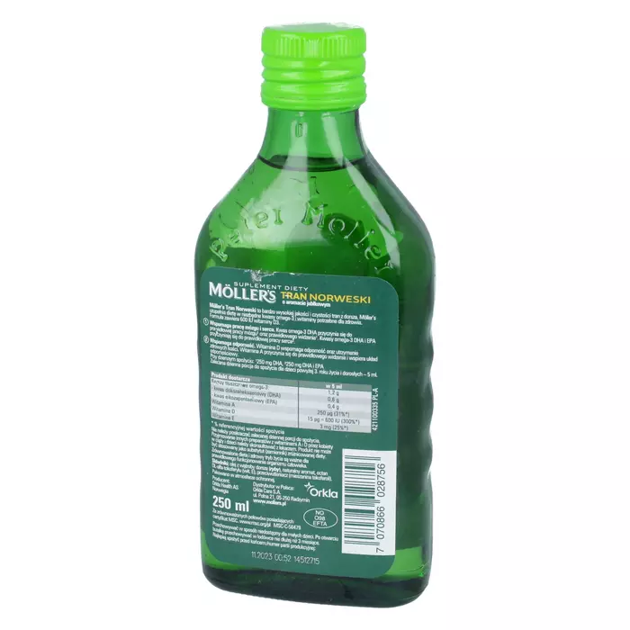 Рыбий жир Mollers Норвежский с омега-3 и вкусом яблока — это отличный способ поддержать здоровье и обеспечить организм необходимыми жирными кислотами. В каждой упаковке содержится 250 мл высококачественного рыбьего жира, который обладает приятным яблочным вкусом.