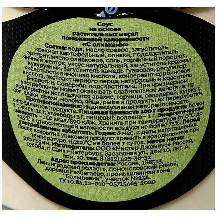 Mr. Djemius Соус майонезный низкокалорийный ZERO Оливки, 350 г