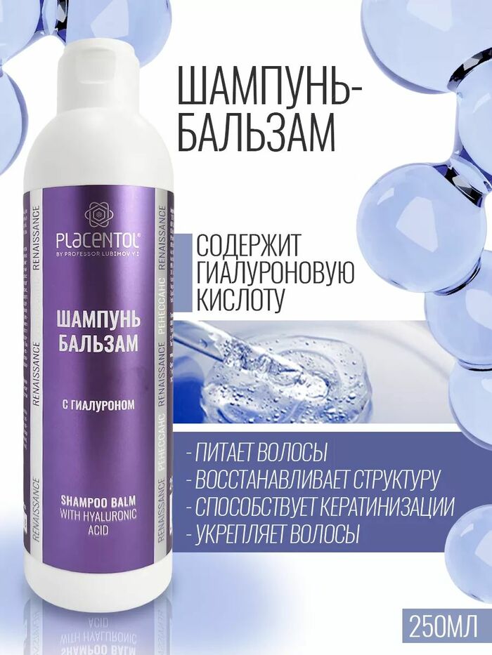 Плацентоль Шампунь-бальзам с гиалуроном для окрашенных и поврежденных волос, 250 мл