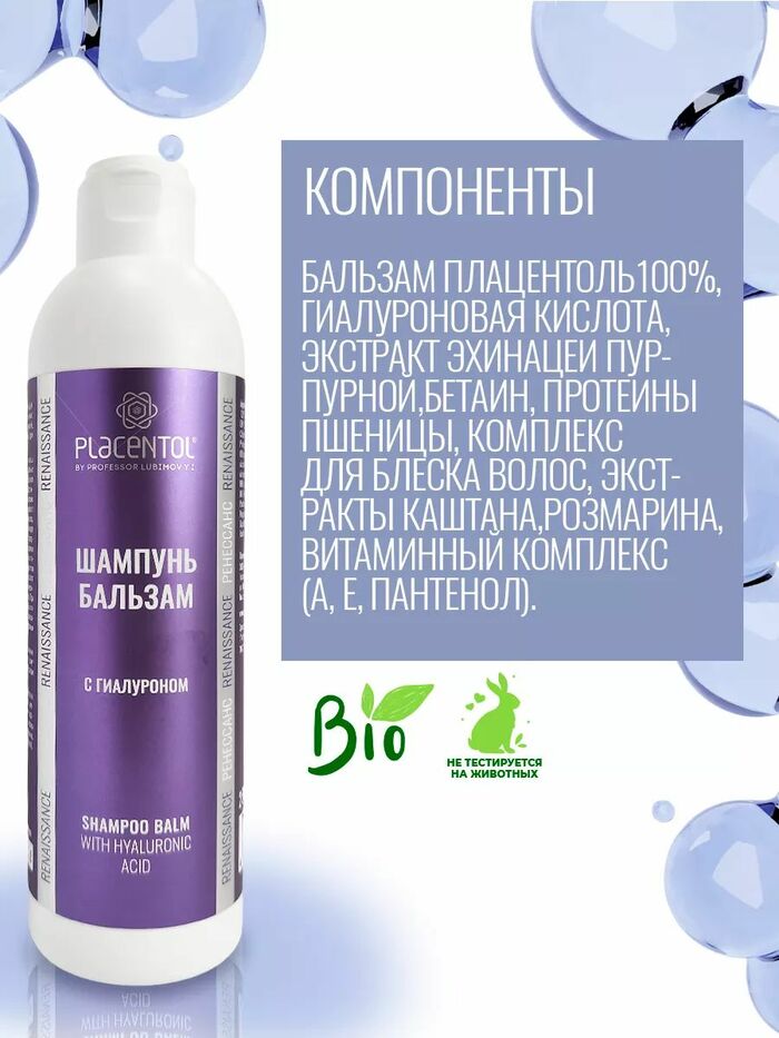Шампунь-бальзам с гиалуроном для окрашенных и поврежденных волос восстанавливающий, укрепляющий и питательный — это бережный уход, который помогает вернуть волосам мягкость, эластичность и ухоженный вид. Бренд Плацентоль заботится о красоте волос с формулой, направленной на восстановление после окрашивания и повреждений.
