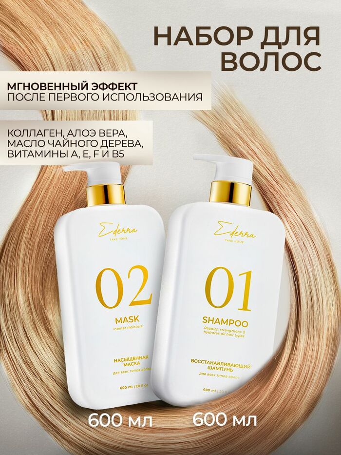 Ederra Repair Набор для нормальных и поврежденных волос 2 в 1, 600 мл