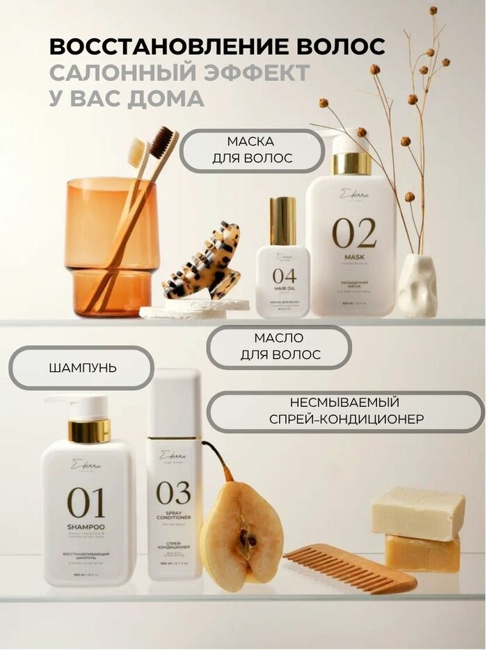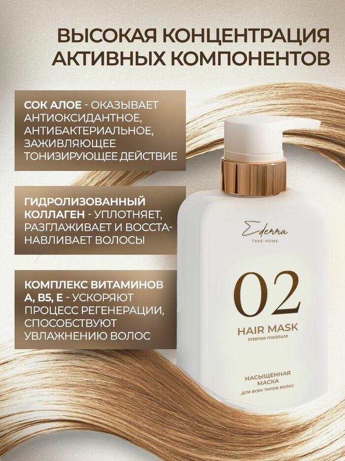 • Глубокое восстановление: Формула 2 в 1 эффективно восстанавливает структуру волос, придавая им силу и блеск.