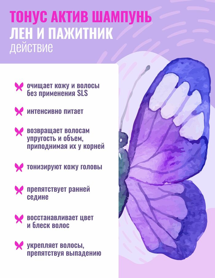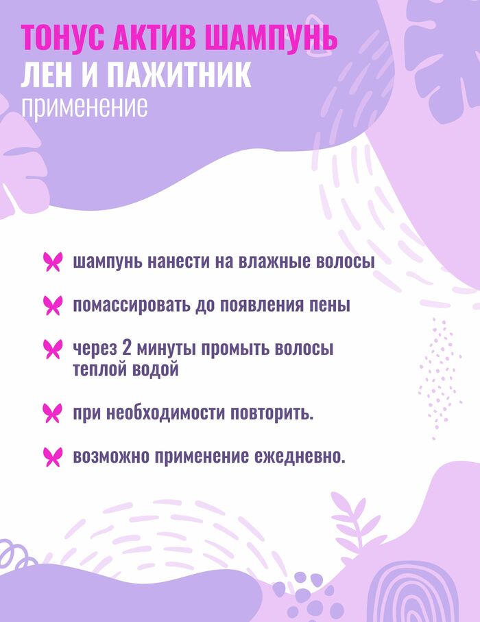 Шампунь Лен и Пажитник от Плацентоль подходит для регулярного применения, когда нужен комплексный результат: тонизирование, качественное очищение, восстановление и укрепление. Обеспечивает комфортное ощущение после мытья и помогает волосам выглядеть ухоженно.