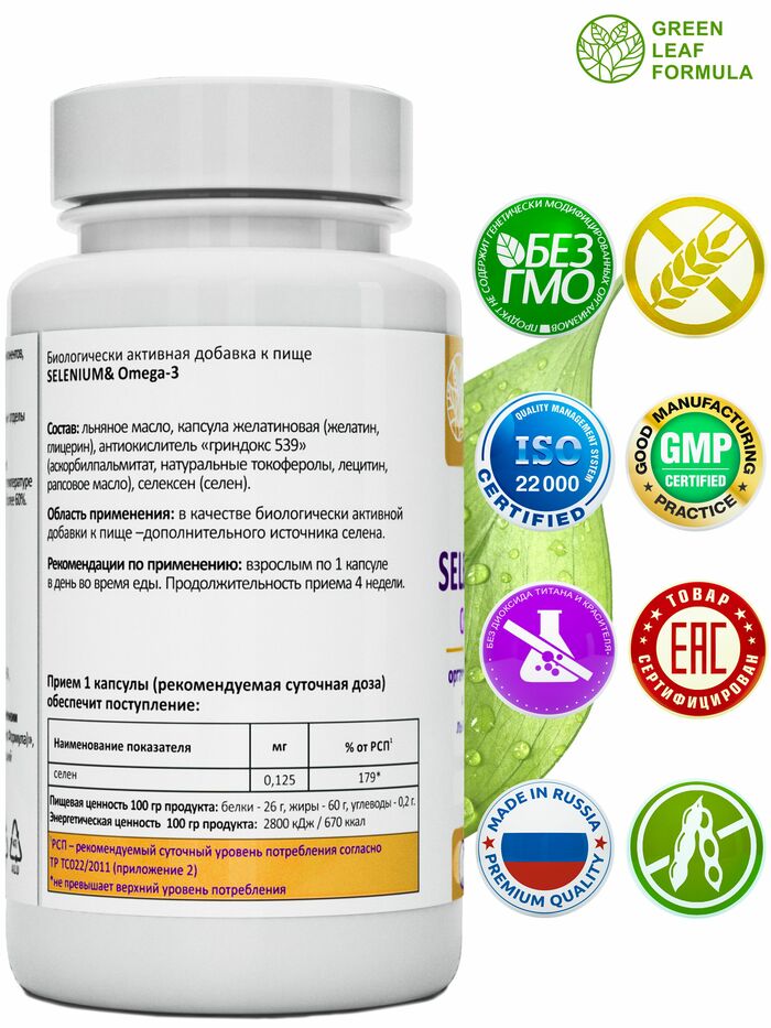 Селен витамины от бренда GREEN LEAF FORMULA — это важный элемент для поддержания здоровья и нормального функционирования организма. В каждой упаковке содержится 30 капсул, которые обеспечивают необходимую дозу селена.