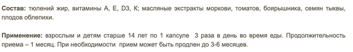 Тюлений жир Peptomix содержит натуральные компоненты, такие как йод и полиненасыщенные жирные кислоты, которые необходимы для поддержания общего здоровья. Продукт также обогащён масляными экстрактами моркови, томатов, боярышника и облепихи, что усиливает его полезные свойства.