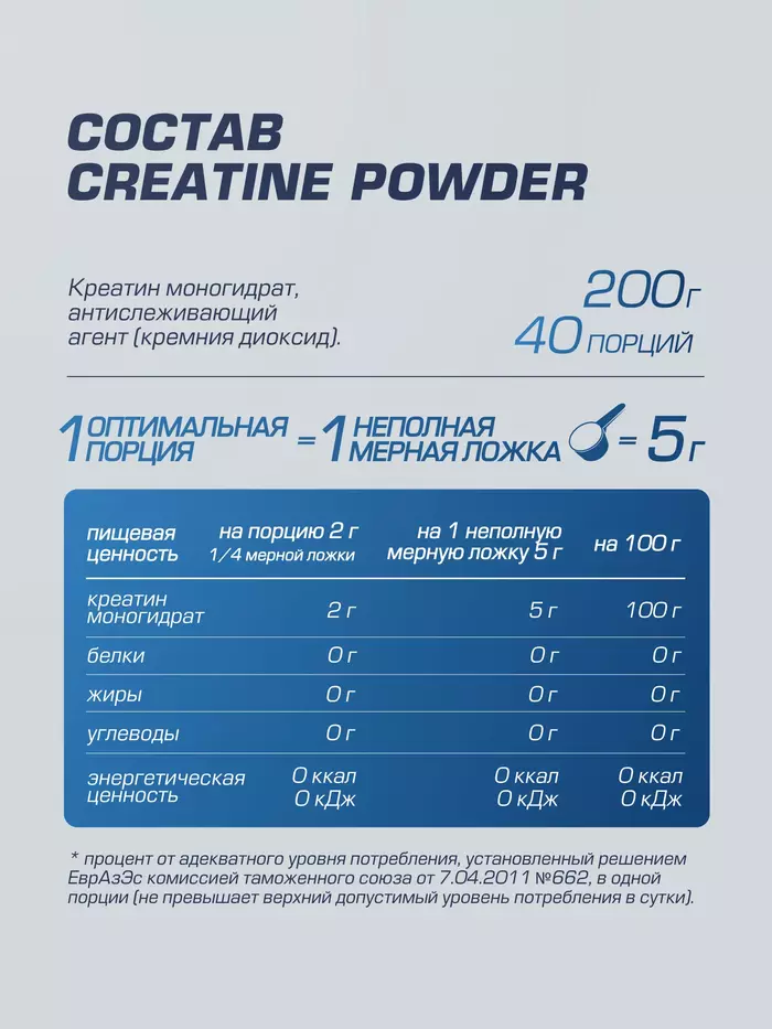 1 порцию (5 грамм) нужно смешать с 100–300 мл жидкости и принимать 1 раз в день (утром, перед сном или за 30 минут до тренировки).
