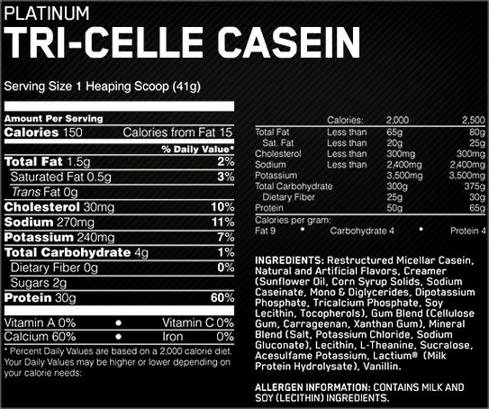 Смешайте одну мерную ложку с горкой 300–360 мл холодной воды. Принимайте 100% Casein Gold Standard прежде всего утром, сразу после сна, а также в любое время, когда Вам нужен качественный протеин пролонгированного действия.