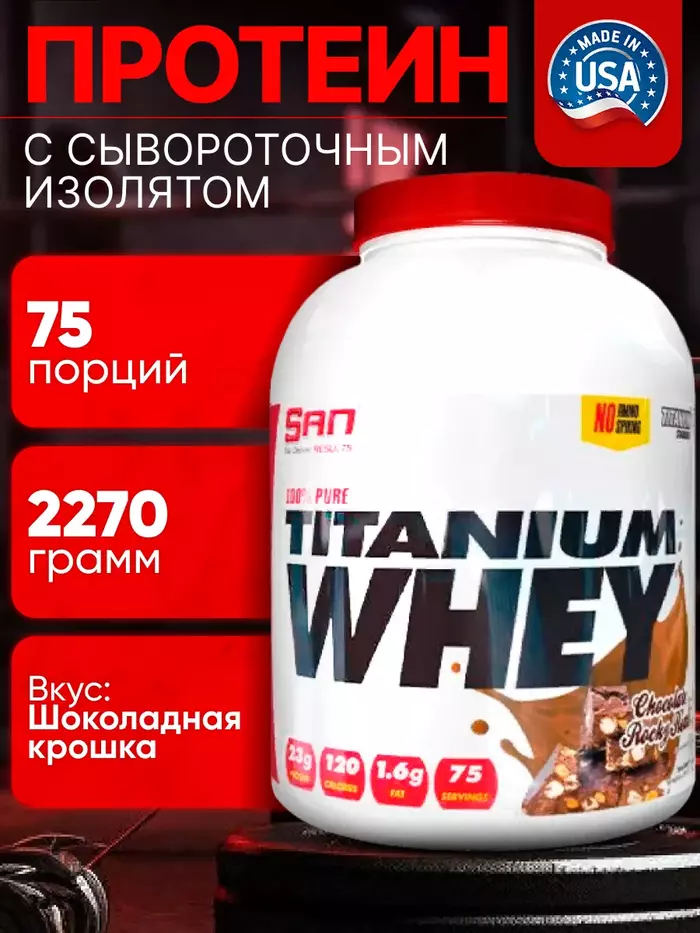 SAN Сывороточный протеин 100% Pure Titanium Whey Шоколад-Роки-роуд, 2270 г
