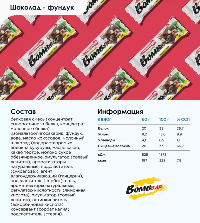 Bombbar Протеиновый батончик Шоколад-Фундук, 60 г
