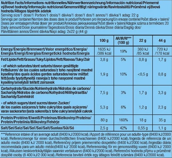 Cмешайте одну порцию (22 г = 1 мерная ложка / 2 столовые ложки с горкой) с 250 мл воды. Используйте шейкер для смешивания. В дни тренировок пейте 1 порцию утром и 1 порцию сразу после тренировки. В дни отдыха пейте 1 порцию утром и 1 порцию вечером.