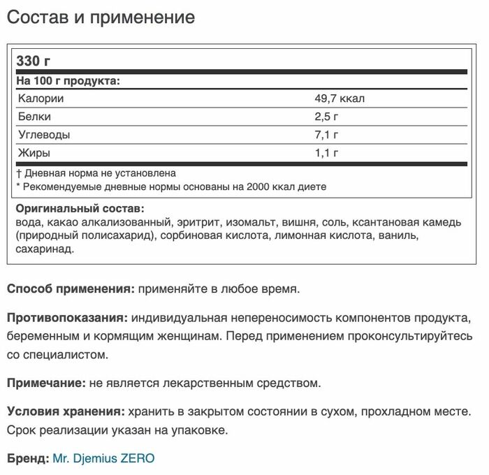 Mr. Djemius Сироп низкокалорийный ZERO Шоколад с вишней, 330 мл