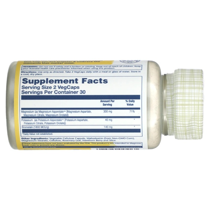 Solaray Аспоротат магния и калия с бромелаином, 60 капсул
