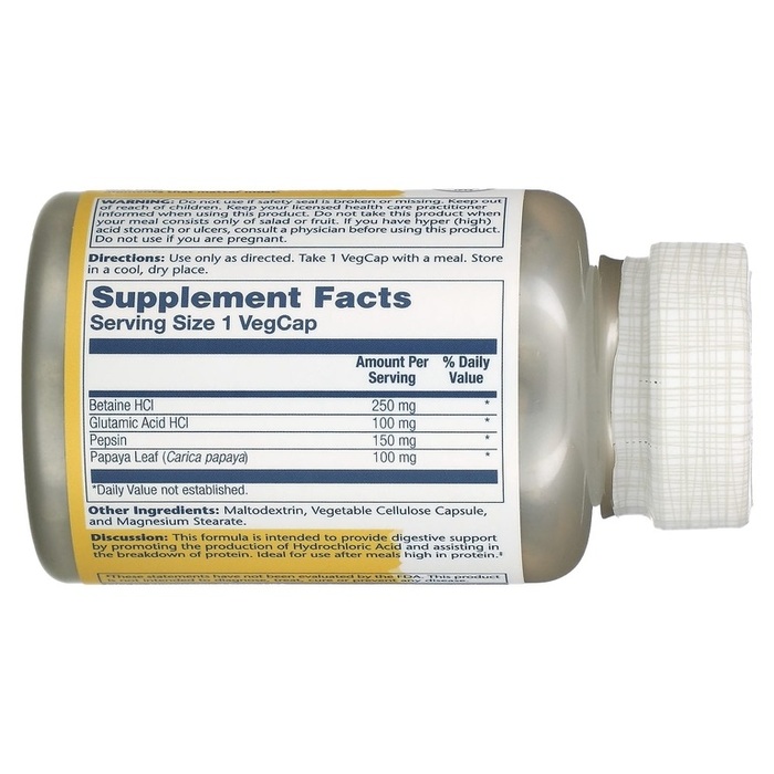 Solaray Бетаин гидрохлорид c пепсином (250 мг), 180 капсул