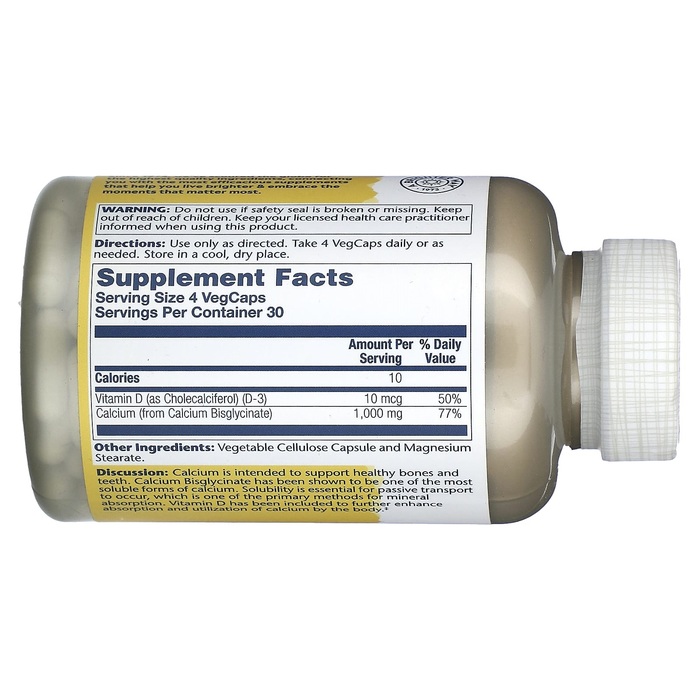 Solaray Бисглицинат кальция с витамином D3 (250 мг), 120 капсул