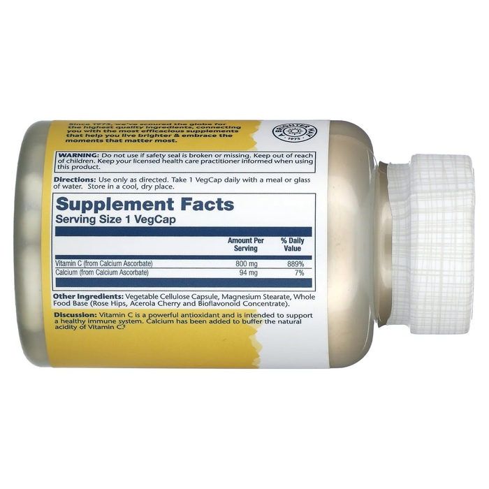 Витамин С — эффективный антиоксидант, который поддерживает здоровье иммунной системы. Кальций добавлен для буферизации естественной кислотности витамина С.