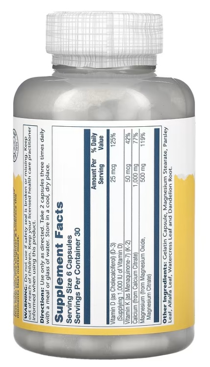 Solaray Цитрат кальция и магния в соотношении 2:1 с добавлением Витамина D-3, 180 капсул