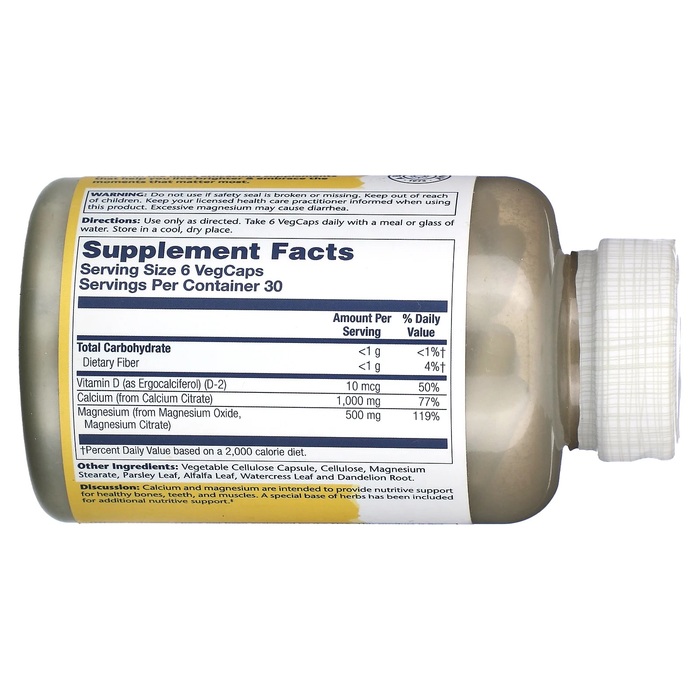 Discussion: Calcium and magnesium are intended to provide nutritive support for healthy bones, teeth, and muscles. A special base of herbs has been included for additional nutritive support.