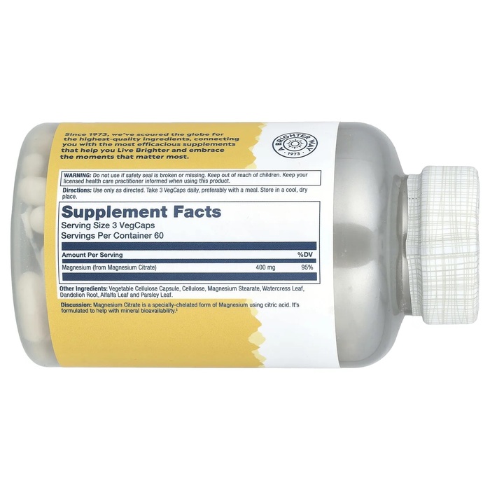 Solaray Цитрат магния (400 мг), 180 капсул