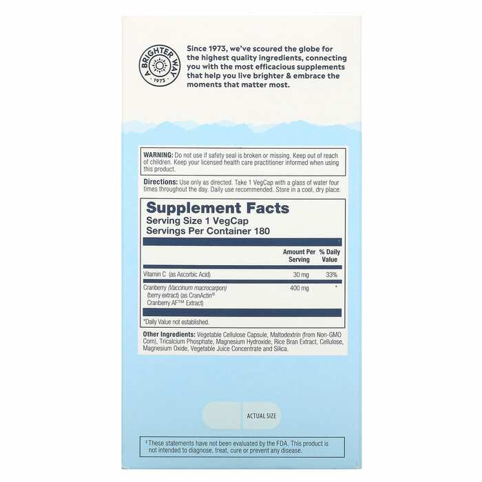 Solaray Экстракт клюквы CranActin (400 мг), 180 капсул