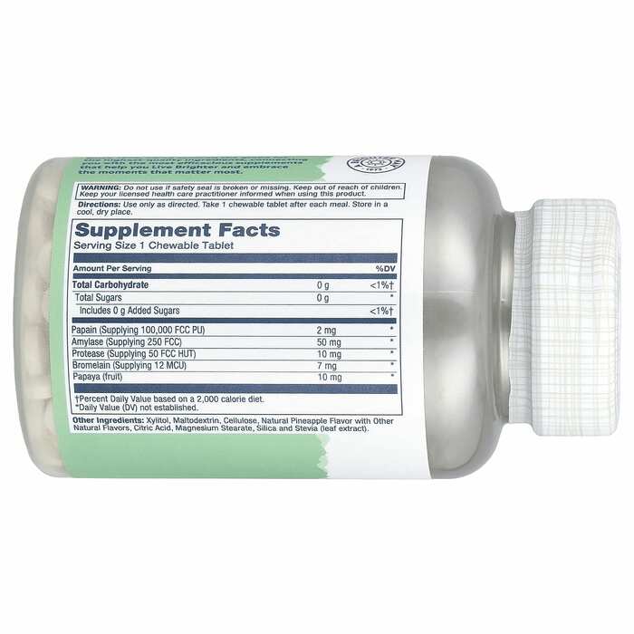 Solaray Ферменты папайи Натуральный ананас, 180 табл
