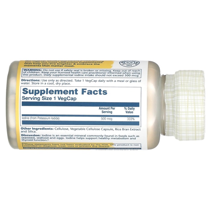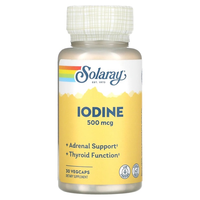 Solaray Йод, 500 мкг, 30 капсул — это пищевая добавка, содержащая йод, который является важным минералом для поддержания здоровья щитовидной железы и обмена веществ.