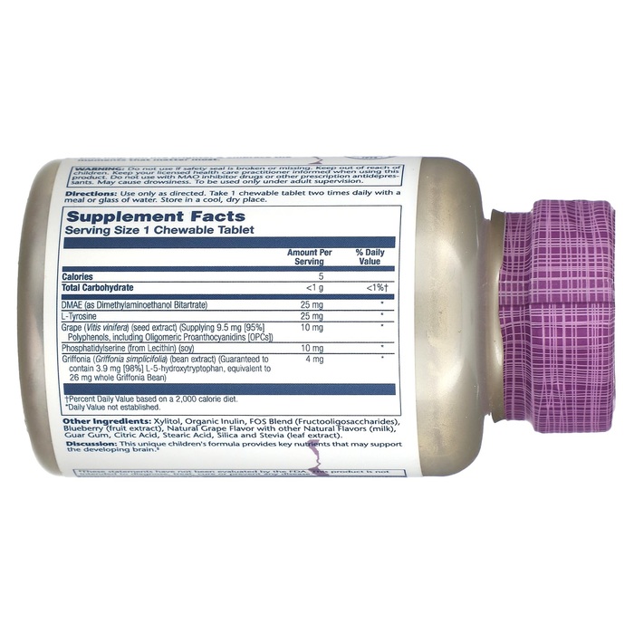 Solaray Пищевая добавка для детей для деятельности мозга Виноград, 60 табл