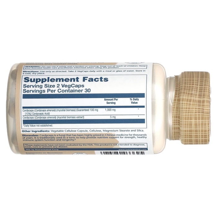 Описание. Ферментированный кордицепс от Solaray® на 100% веганский, не содержит вспомогательных веществ, наполнителей или дополнительных ингредиентов. Биомассу мицелия органических грибов выращивают на органическом цельном овсе без глютена, а затем ферментируют. Мицелий — это вегетативное тело грибов. Именно благодаря этому веществу, похожему на корень, гриб усваивает питательные вещества.