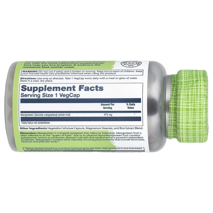 Продукт «Мангустин Mangosteen NG V» от Solaray представляет собой биологически активную добавку, основанную на экстракте плодов мангостана (Garcinia mangostana). Каждая капсула содержит 475 мг концентрированного экстракта мангостана, богатого уникальными химическими соединениями, известными как ксантоны. Эти ксантоны обладают мощными антиоксидантными, противовоспалительными и антибактериальными свойствами, которые могут оказывать положительное влияние на различные аспекты здоровья.