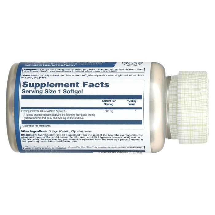 Описание. Масло примулы вечерней получают из семян прекрасного растения примулы вечерней и является одним из самых богатых в мире источников ГЛК (гамма-линоленовой кислоты) и ЛК (линолевой кислоты). Масло примулы вечерней Solaray® получают из семян методом холодного отжима. Растворители не использовались.
