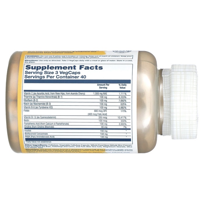 Полезная информация: Незаменимые витамины B необходимы для правильного метаболизма и производства энергии. Витамины группы B помогают поддерживать здоровье волос и кожи, передачу нервных импульсов, функцию иммунной системы и образование эритроцитов. Эта двухступенчатая формула медленного высвобожденная предназначена для быстрого выпуска половины ингредиентов. Другая половина постепенно высобождается в течение до 8 часов **, что может помочь увеличить доступность этих витаминов для организма в течение более длительного периода времени.