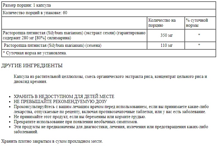 Solaray Экстракт семян расторопши (350 мг), 60 капсул