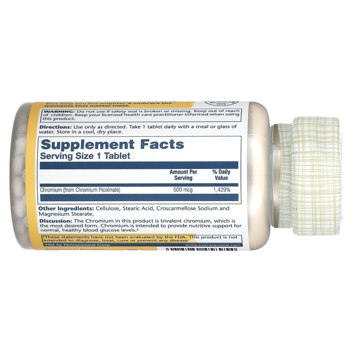 Хром в этом продукте представляет собой трехвалентный хром, который является наиболее желаемой формой. Хром обеспечивает питательную поддержку нормального и здорового уровня глюкозы в крови.