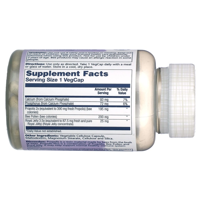 Описание. Прополис - это полимерный материал, который пчелы получают из почек деревьев. Прополис Плюс - это комбинация прополиса, пчелиной пыльцы и маточного молочка. Это может помочь поддерживать нормальную работу иммунной системы.