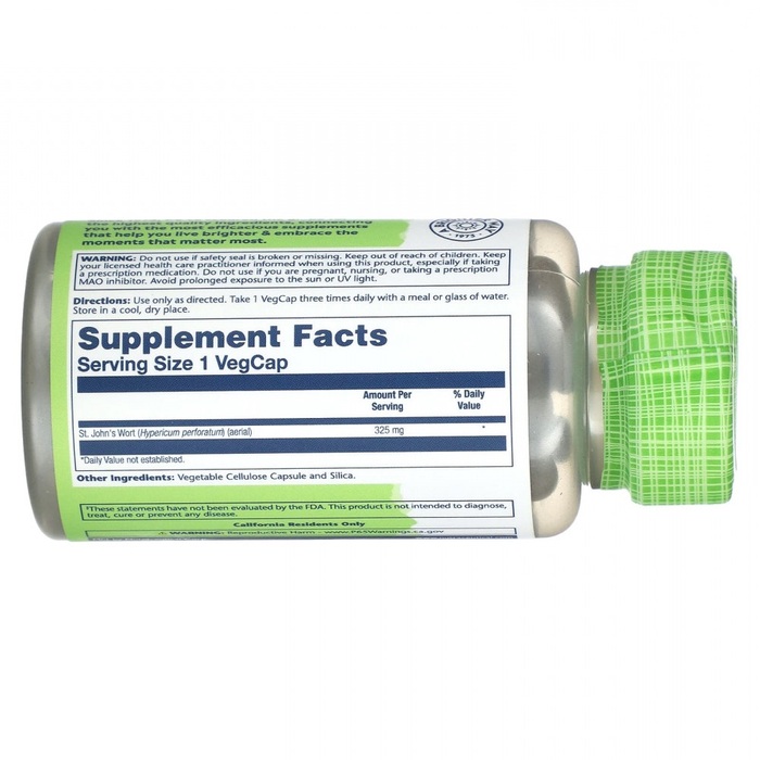 Каждая таблетка Solaray St John's Wort NG V содержит 325 мг экстракта зверобоя, что обеспечивает эффективную дозировку для облегчения симптомов стресса и нервозности. Продукт помогает снять напряжение, улучшить эмоциональное состояние и повысить устойчивость к стрессовым ситуациям, что делает его полезным для людей, испытывающих ежедневные психоэмоциональные нагрузки или переживающих сложные жизненные моменты.