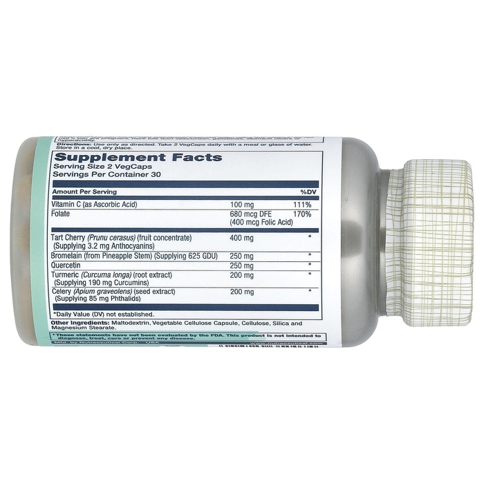 Средство для очищения от мочевой кислоты Total Cleanse компании Solaray содержит синергетические ингредиенты, включающие вишню, бромелаин, кверцетин, куркуму и сельдерей. Наряду со сбалансированным питанием эти эффективные ингредиенты помогают обеспечить питательную поддержку для поддержания нормального уровня мочевой кислоты и гибкости суставов. Компания Solaray всегда стремится создавать качественные и эффективные добавки, поэтому средство для очищения от мочевой кислоты Total Cleanse не содержит искусственных красителей, ароматизаторов и консервантов.