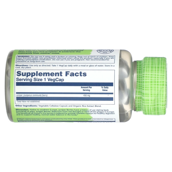 Описание. Ягоды можжевельника произрастают в Южной Европе и используются тысячи лет назад. Считалось, что характерный запах ягод можжевельника защищает от эпидемии чумы. Считается, что полезное масло, содержащееся в ягодах, обеспечивает питательную поддержку здорового пищеварения и поддерживает здоровый, нормальный водный баланс в организме.