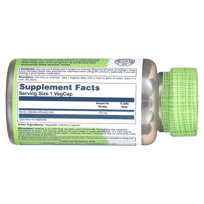Solaray Корень Валерианы (470 мг), 100 капсул