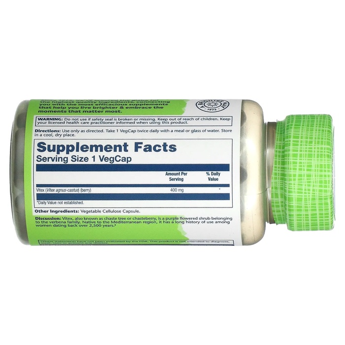 Solaray Витекс священный (400 мг), 100 капсул — это натуральная добавка, основанная на экстракте витекса священного (также известного как чабрец или «женское дерево»), который традиционно используется для поддержания гормонального баланса у женщин. Витекс помогает регулировать уровень гормонов, улучшать менструальный цикл и снижать симптомы предменструального синдрома (ПМС).