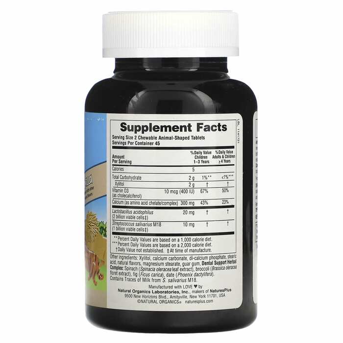 Детские жевательные таблетки Tooth Fairy от Animal Parade® — это новая захватывающая добавка с живыми пробиотическими клетками M18, ацидофильными лактобактериями (L. acidophilus), витамином D3 и кальцием, способствующим укреплению зубов, и ксилитолом, которые могут снизить риск разрушения зубов. Восхитительные ванильные жевательные таблетки Tooth Fairy в забавной форме животных также содержат смесь специальных цельнопищевых натуральных питательных веществ, полезных для зубов.